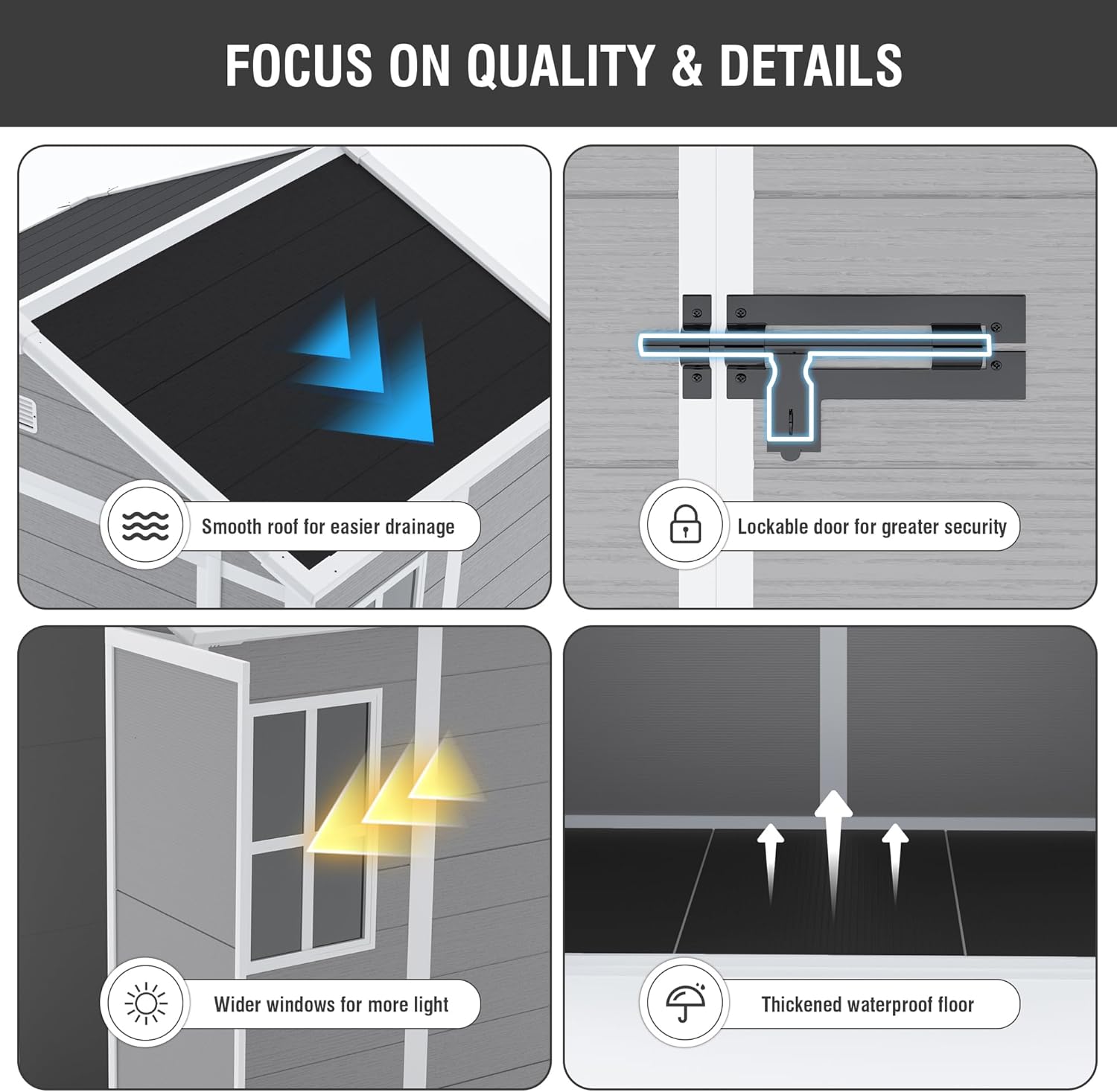 - đ ăIntegrated Vents & Clear WindowăDesigned for airflow and visibility, this garden shed features louvered vents above the door to enhance ventilation and reduce moisture buildup. A crystal-clear side window fills the interior with natural light, eliminating dark corners and making it easier to find your tools and supplies