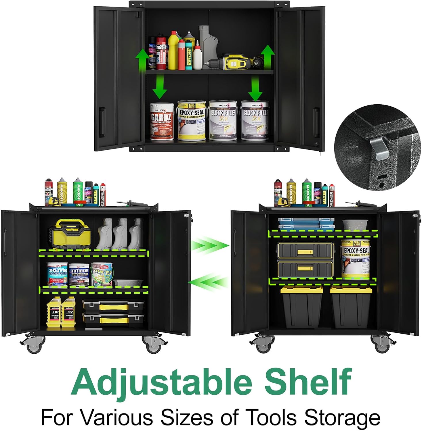 Metal Tool Cabinet,Garage Storage Cabinet System,Wall Cabinet & Locking Rolling Tool Cabinet with Doors and Adjustable Shelves,Steel Tool Cabinets for Home,Office (5 Pcs-StyleB, Black)