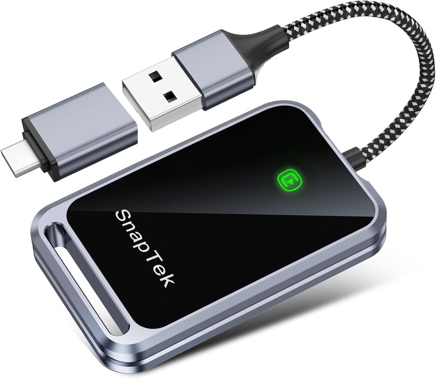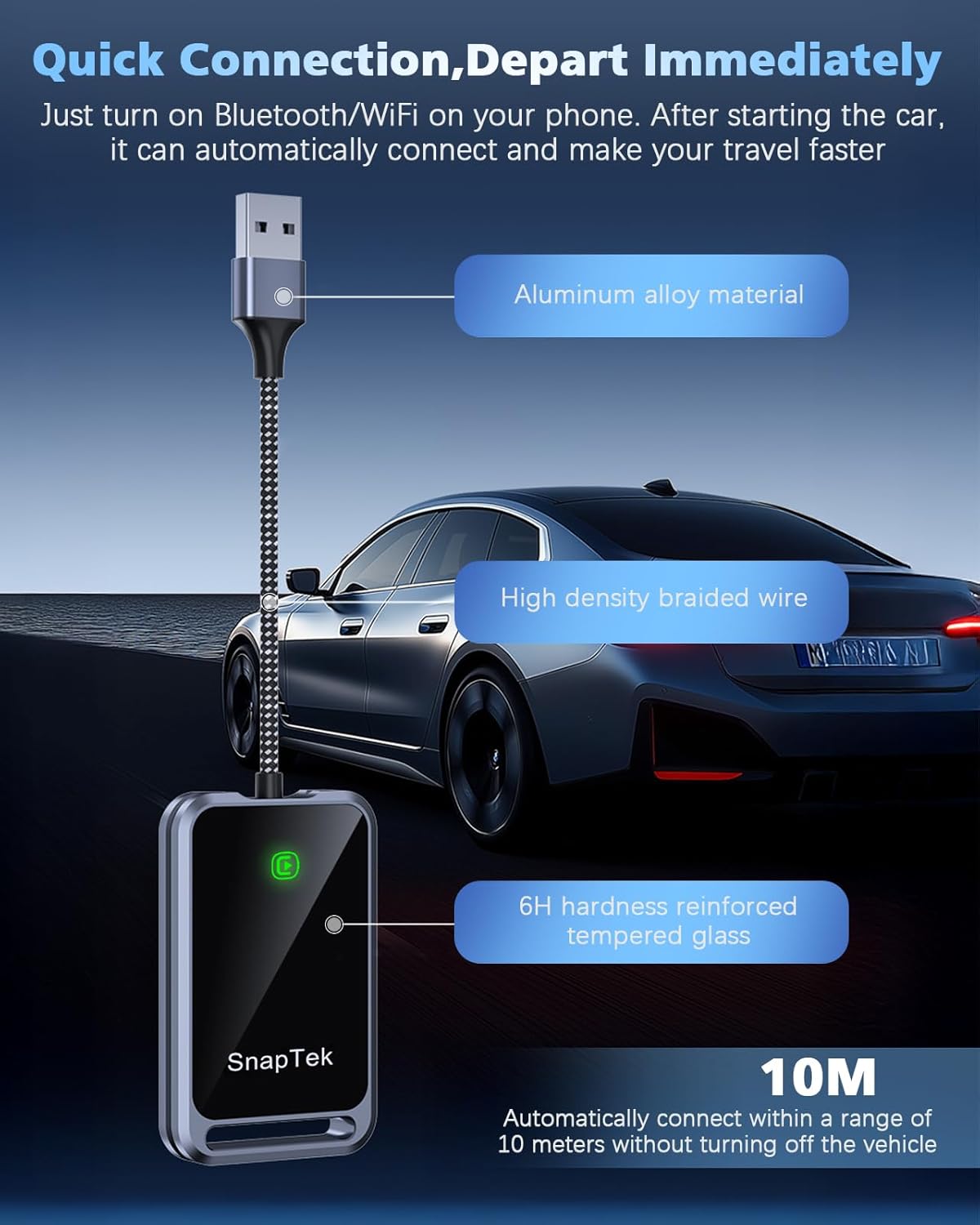 - Instant Upgrade from Wired to Wireless CarPlay: Tired of dealing with messy cables? Unleash the true freedom of Wireless CarPlay the moment you start your car. SnapTek 2025 upgraded wireless CarPlay adapter instantly transforms your wired CarPlay into a wireless system, allowing you to seamlessly access maps, Siri assistant, radio, music, and calls without ever plugging in your iPhone again. Enjoy a cleaner cabin and unparalleled convenience.