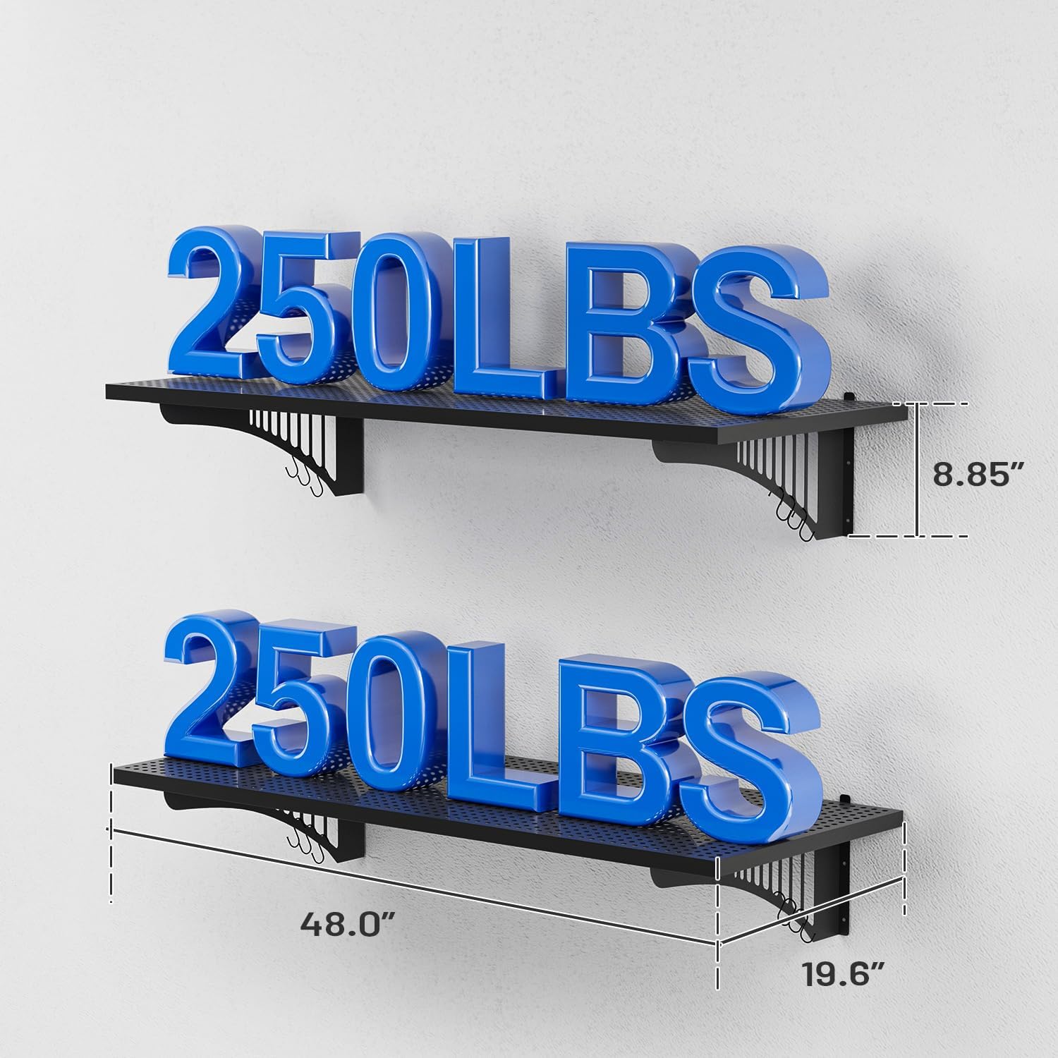 YOLENY 2-Pack 1.64x4FT Adjustable Heavy Duty Garage Wall Shelving, 500lbs Load Capacity Wall Mount Storage Shelf, Garage Storage Rack with Hooks, Metal Floating Shelves Organizer for Workshop