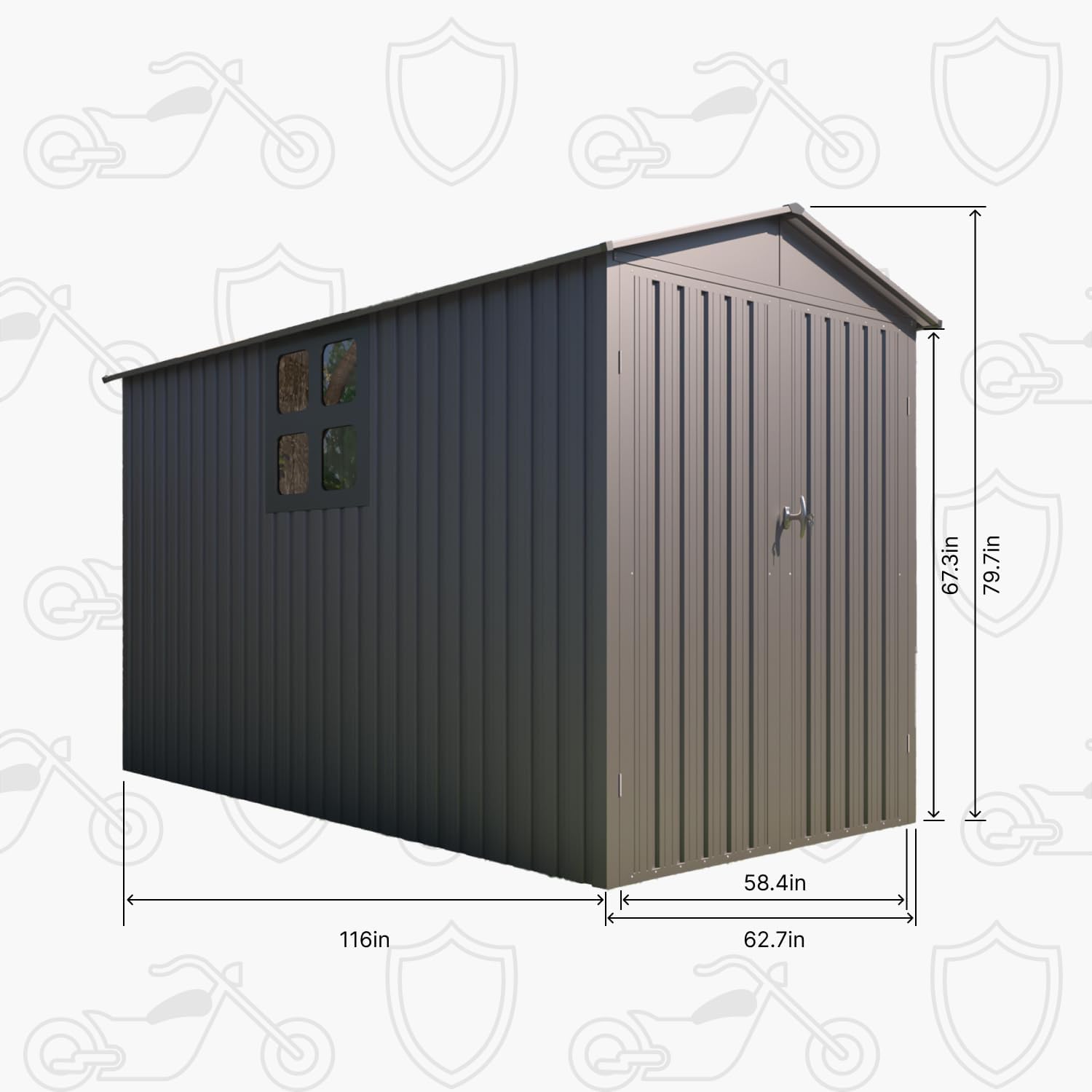 - [Multi-Use Flexibility] Customize your motorcycle storage shed with optional glide tracks for effortless parking, or go track-free for flexible layouts. Beyond bikes, this top-tier Heavy duty vehicle shed transforms into a premium storage hub for tools, gardening gear, pool equipment, and more. One shed, endless possibilities