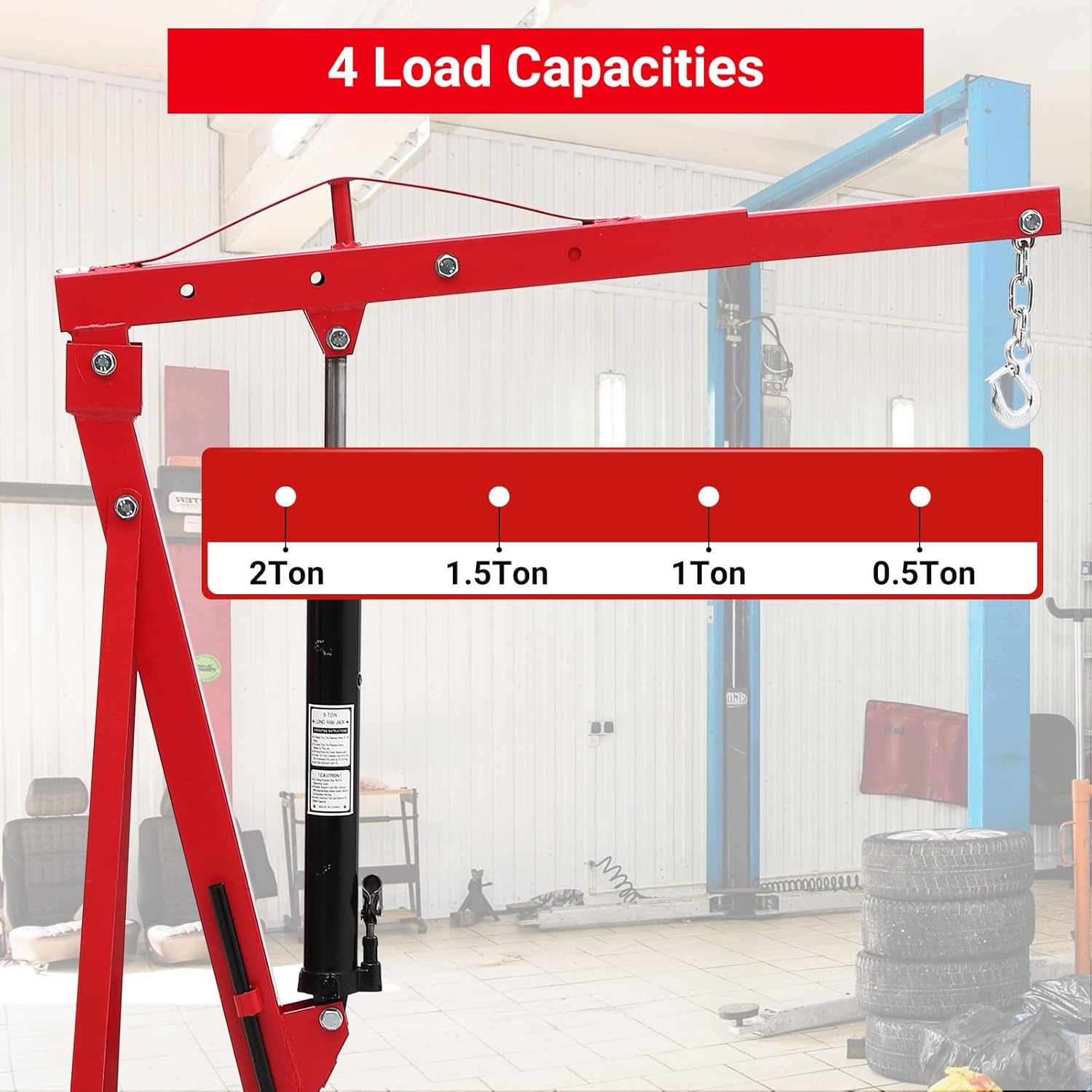 - Adjustable Positions & Folding Design:Featuring four adjustable boom positions (0.5 Ton, 1 Ton, 1.5 Ton, and 2 Ton) and a lasting ram hydraulic cylinder, this shop crane adapts to diverse lifting needs. Its foldable extension arm and stand enable compact storage.