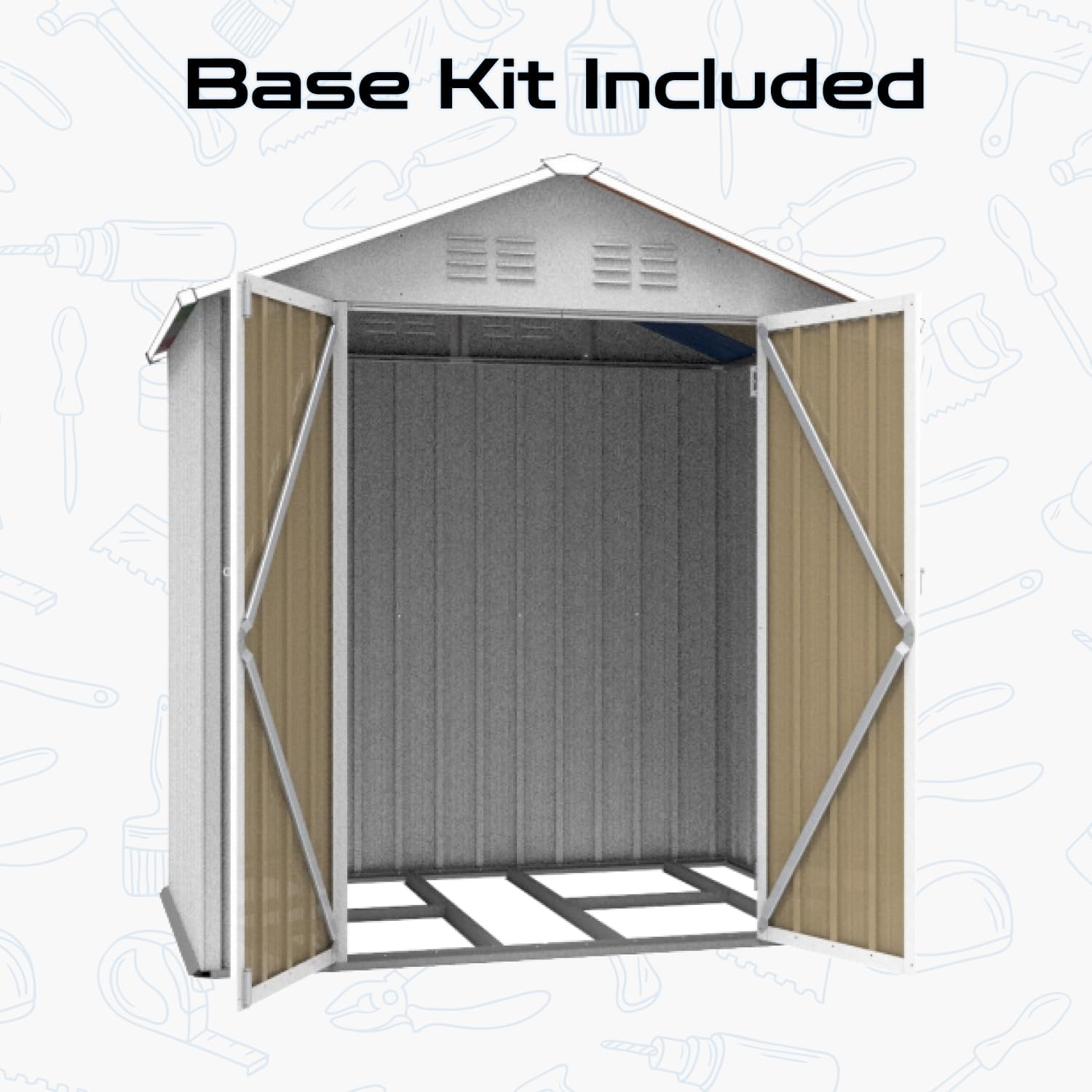 - đłăVersatile Outdoor Storageă Maximize your outdoor space with this versatile metal shed, ideal for patios, backyards, gardens, or lawns. Its spacious, well-designed interior accommodates lawnmowers, gardening tools, seasonal decorations, bicycles, or even serves as a secure hobby workshop. This casita de patio keeps your belongings organized and protected from the elements, providing a flexible solution to maintain a tidy and functional outdoor area