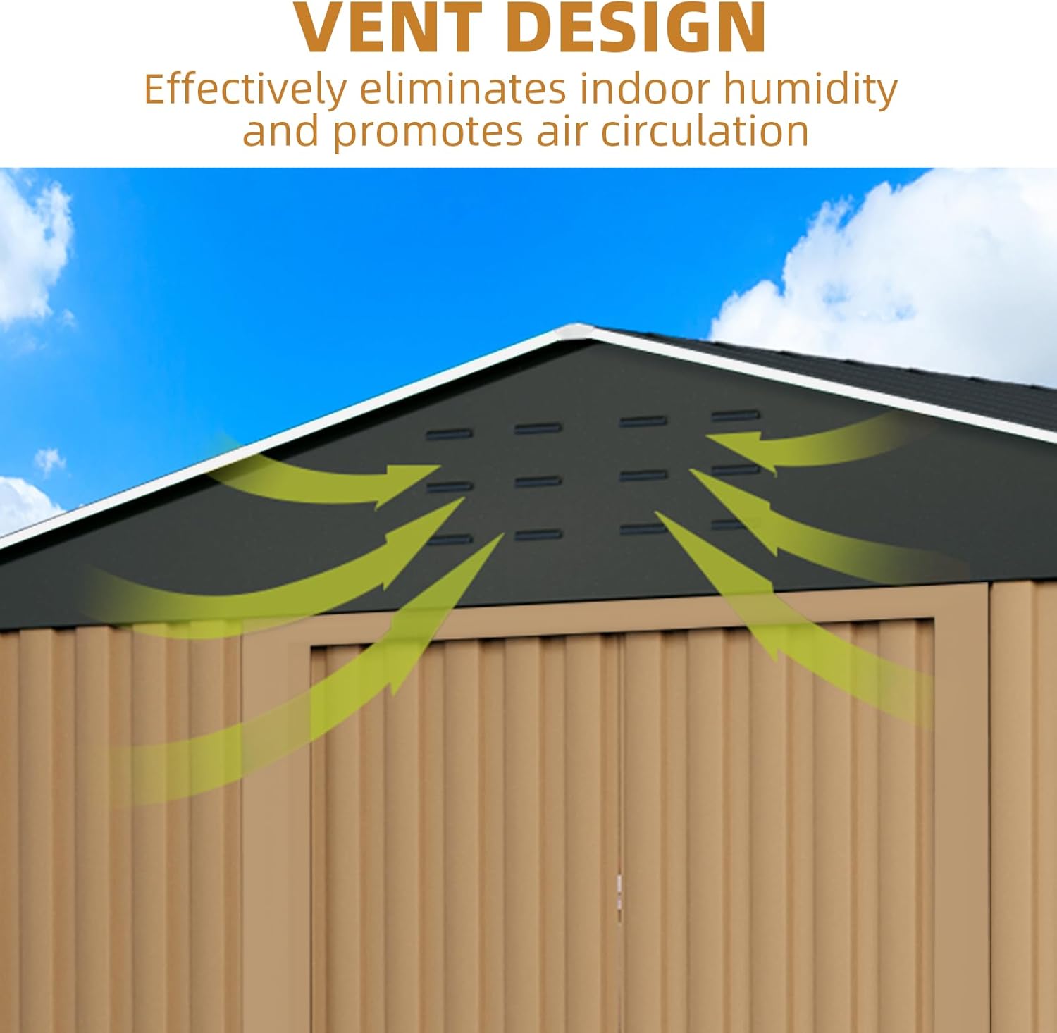 - 【Spacious Storage Space】This 8 X 8-Foot Metal Shed Provides Ample Storage Space And Can Easily Accommodate Snow Blowers, Shovels, Outdoor Furniture, Bicycles, Gardening Tools And Other Items, Making It An Ideal Choice For Your Yard Tidying Up.
