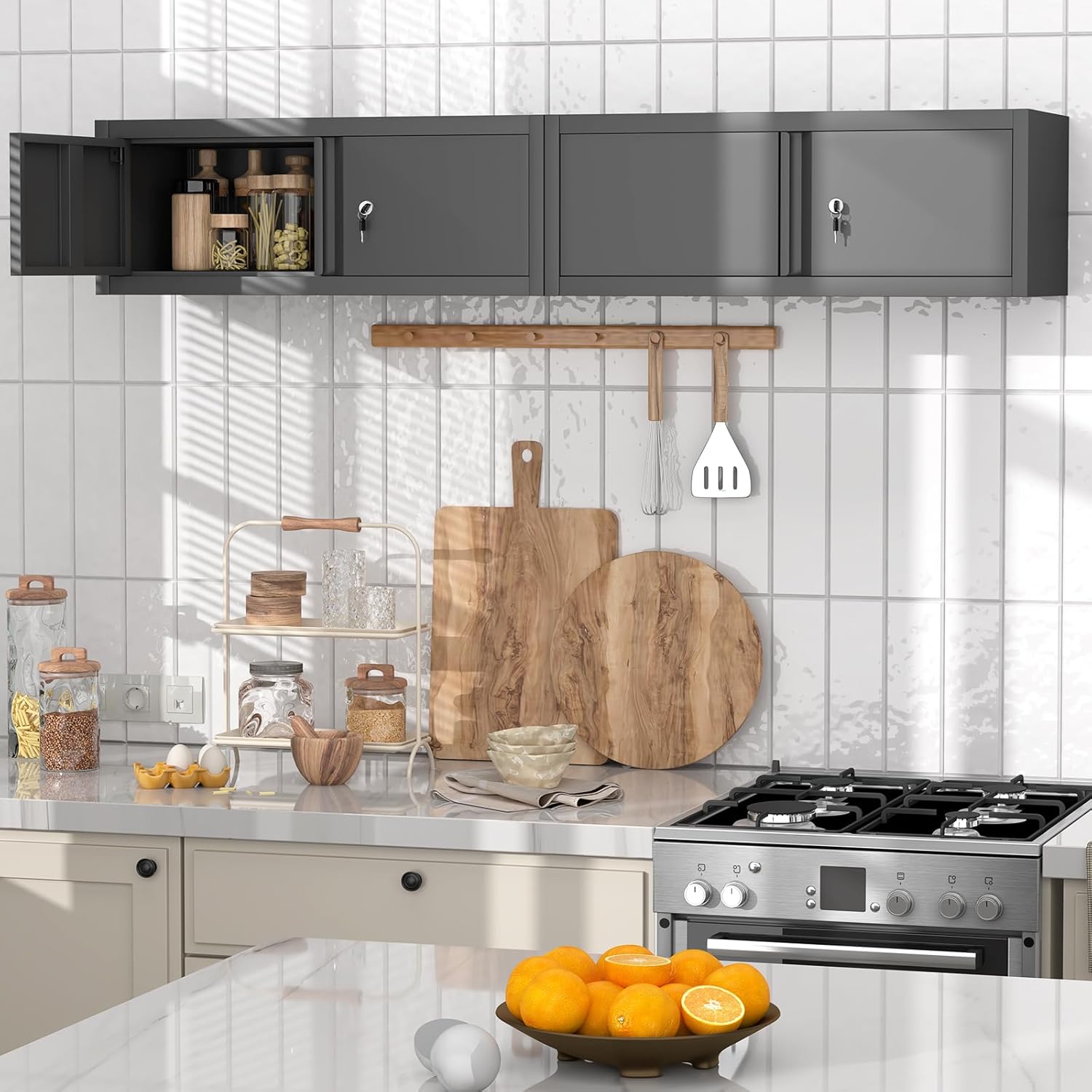 - 【Wall Mounted Storage Cabinet】This durable floating wall mounted cabinet with lockable doors and gooseneck handle, compact size, you will find it suitable for your garage, home office, bathroom, pantry or utility room