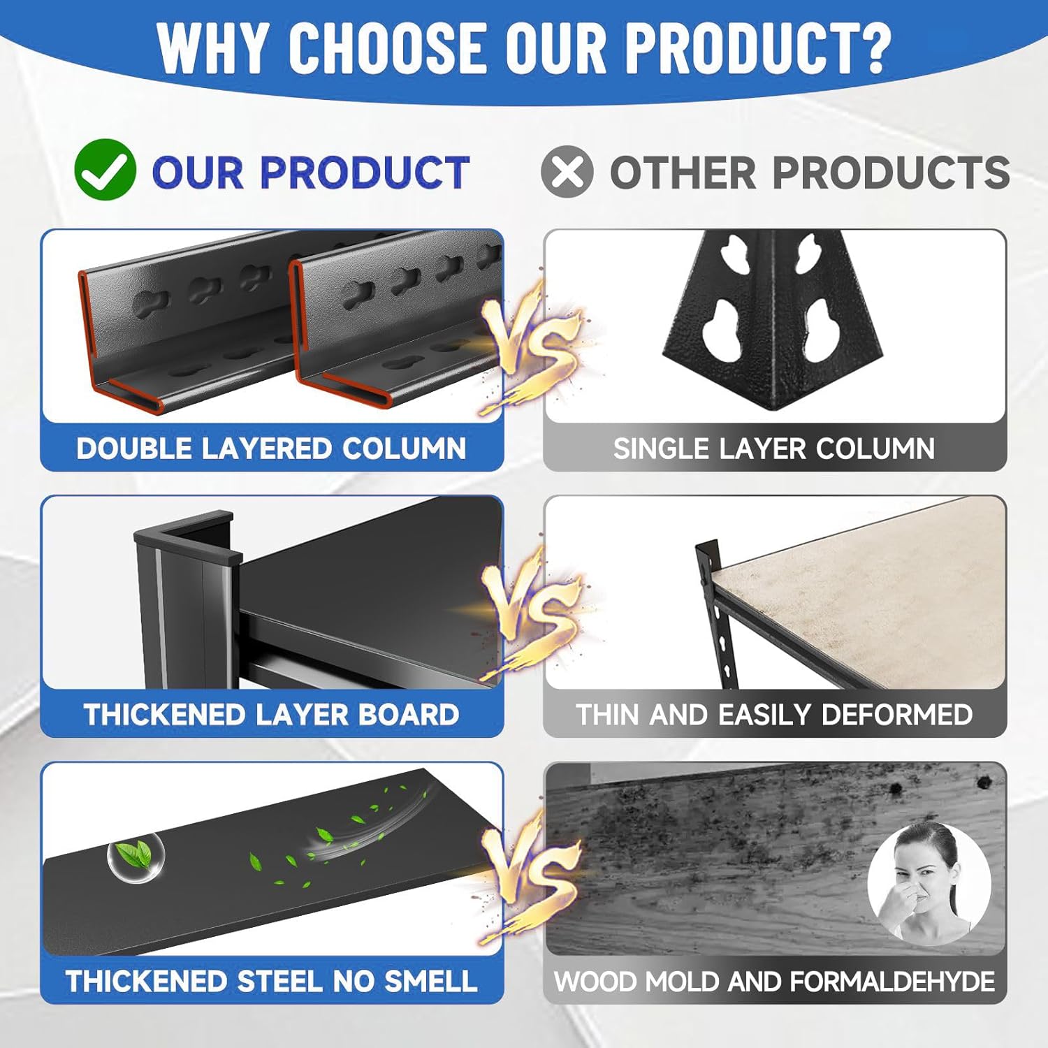 - 【Quality Assurance and Professional Support】 Our professional team provides 24/7 online service. Every step from production to delivery undergoes rigorous inspections and passes three distinct quality checks. The reinforced packaging with corner protectors safeguards your metal garage storage shelving unit during transit. Enjoy a one-year warranty with free returns within 30 days; if you encounter any issues, contact us immediately after delivery. We highly value your user experience and are committed to providing optimal service for your garage storage and organization solutions