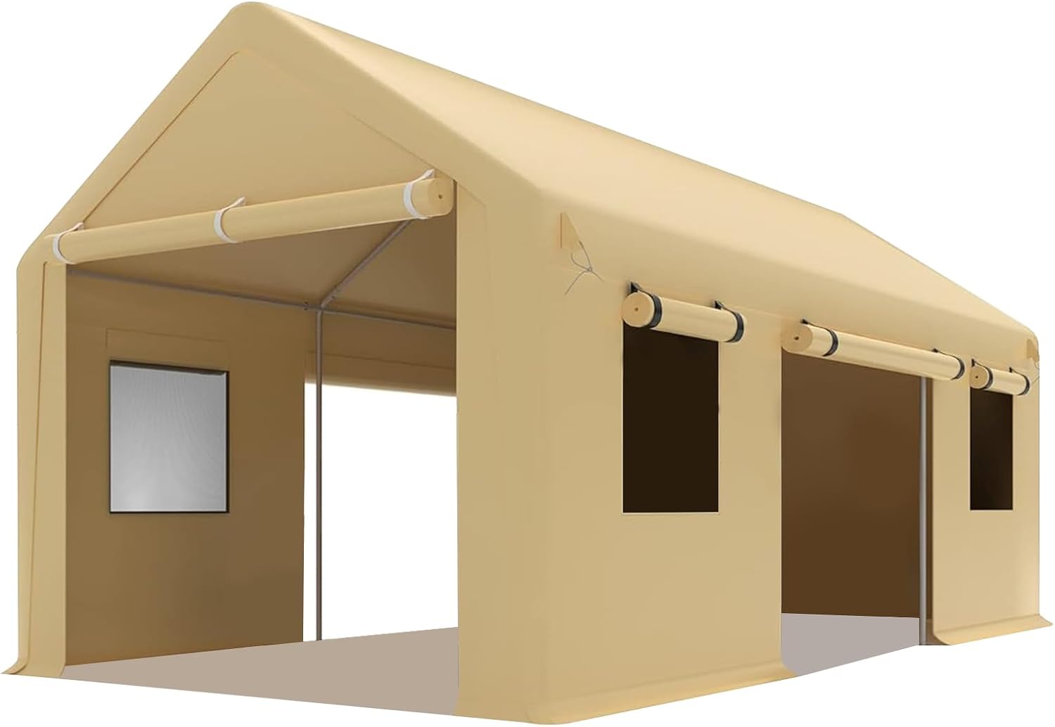 10 x 20FT Heavy Duty Carport with Roll-Up Windows, Portable Garage with Removable Sidewalls & Doors, Portable Car Tent Garage with Roll-Up Windows and All-Season Tarp, for Car, Truck,