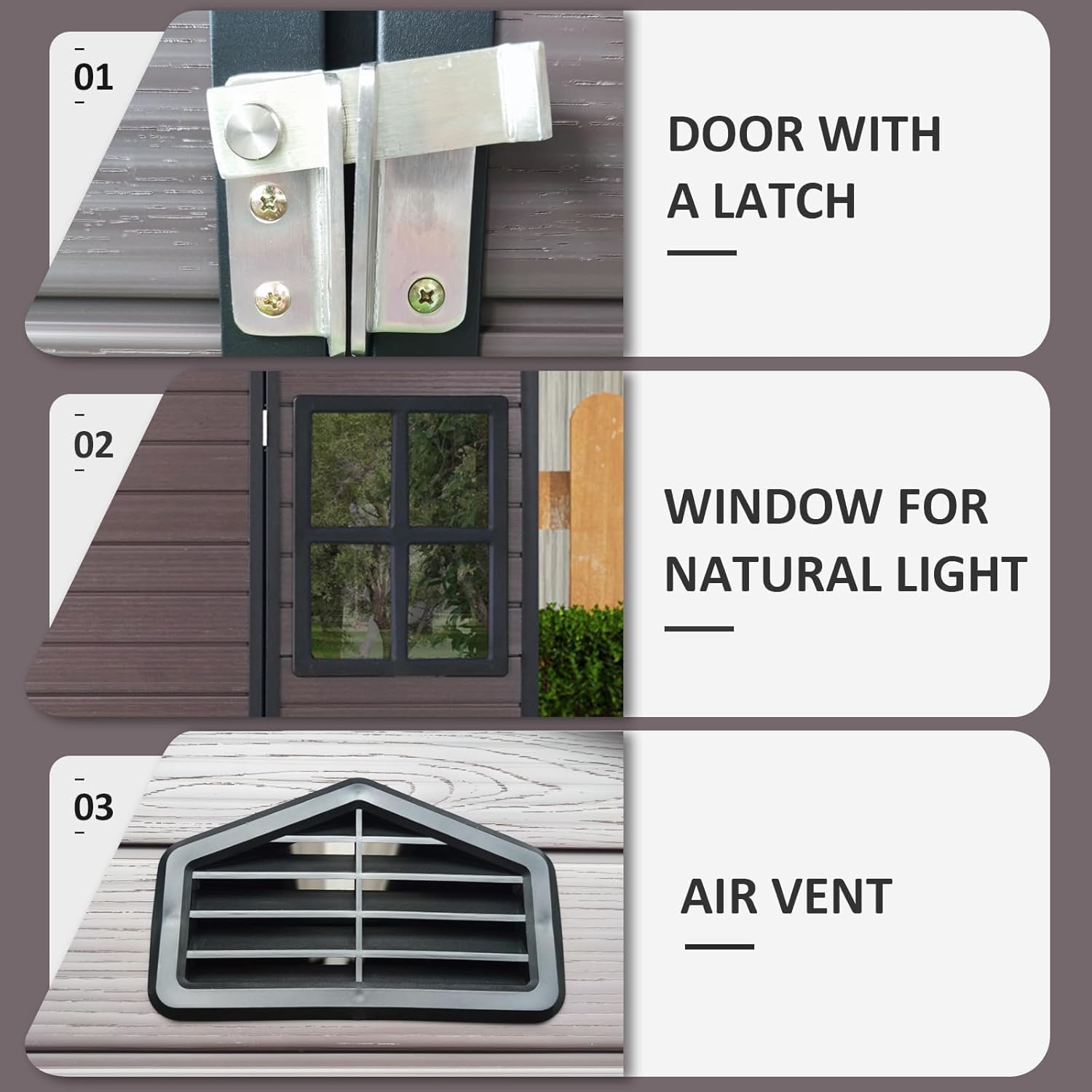 - ๐ก๐๐ฎ๐ฅ๐ญ๐ข-๐๐ฎ๐ง๐๐ญ๐ข๐จ๐ง๐๐ฅ ๐๐ฌ๐: The sloped roof of this 8x6 resin storage shed effectively prevents water leaks and snow buildup. Two high-definition clear 4-pane windows let in soft natural light, while dual ventilation vents improve airflow to keep contents dry. It's not just a secure space for garden toolsโit also works as an outdoor workshop or cozy pet house.