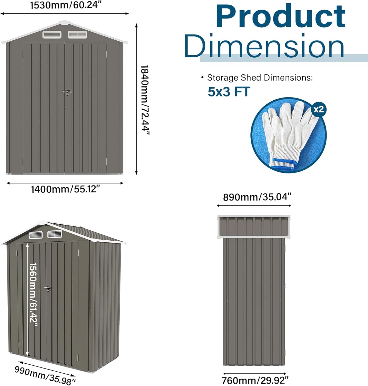 - MAXIMUM STORAGE, MINIMAL FOOTPRINT: ly, a solution for cluttered balconies and tight corners; this 5x3 FT small shed is the ultimate space-saver, transforming unused nooks into highly efficient storage zones; The smart, vertical design of this patio storage cabinet provides ample room for long-handled garden tools, cleaning supplies, and sports equipment without eating up your valuable outdoor living area