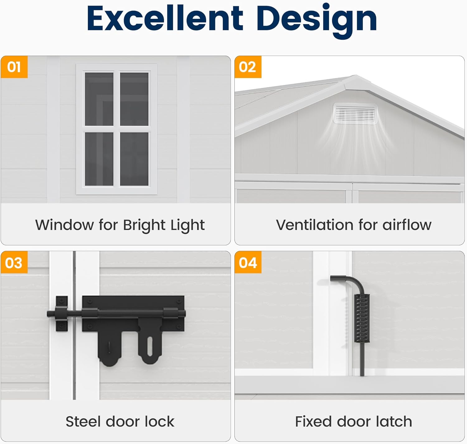 - STURDY STRUCTURE: Our outdoor storage room is equipped with a sturdy structure that can protect the stored items from the threat of rain and mold, while the lockable doors also provide security for your property