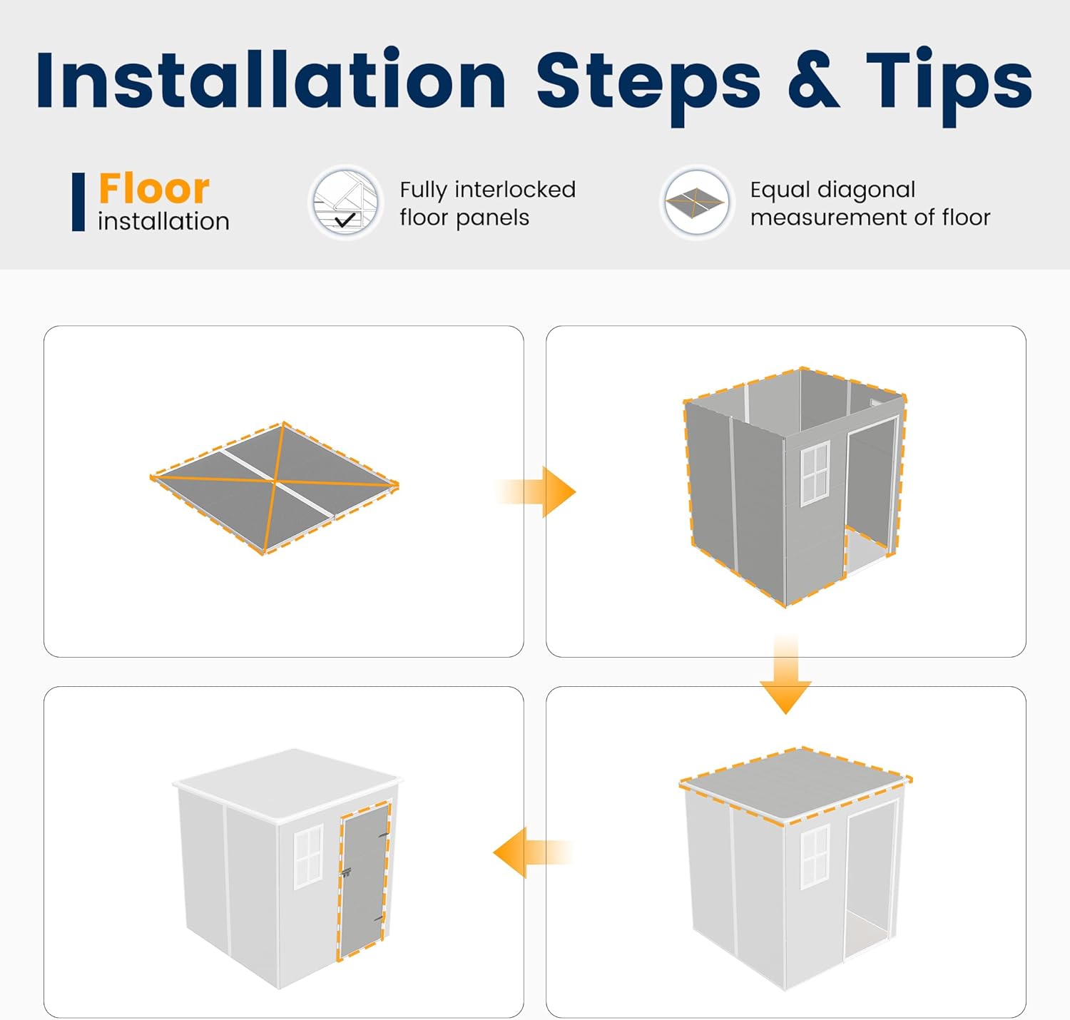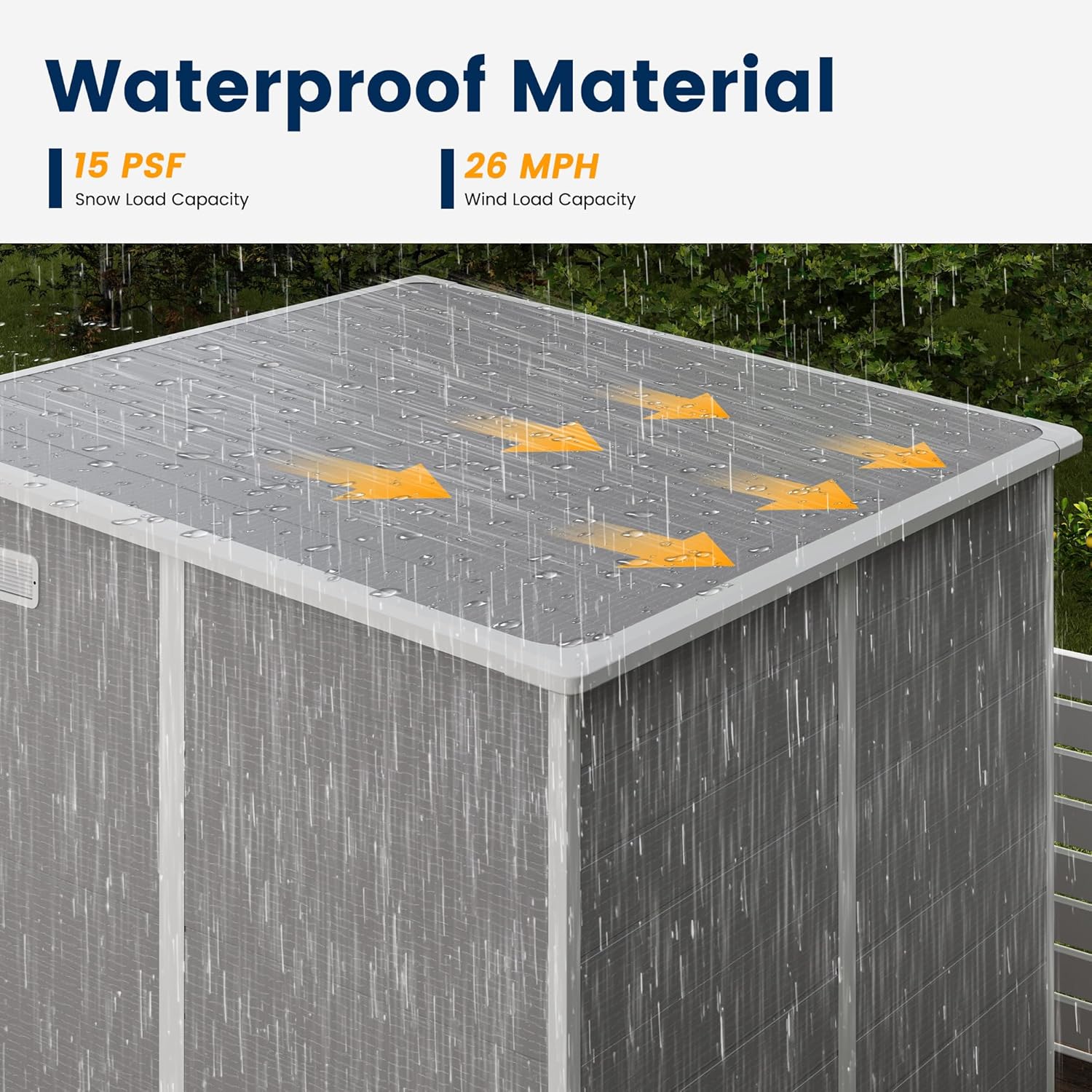 UDPATIO Resin Storage Shed 6 x 6 FT, Outdoor Garden Sheds with Floor Plastic Patio Outdoor Storage Shed with Lockable Door, Gray White