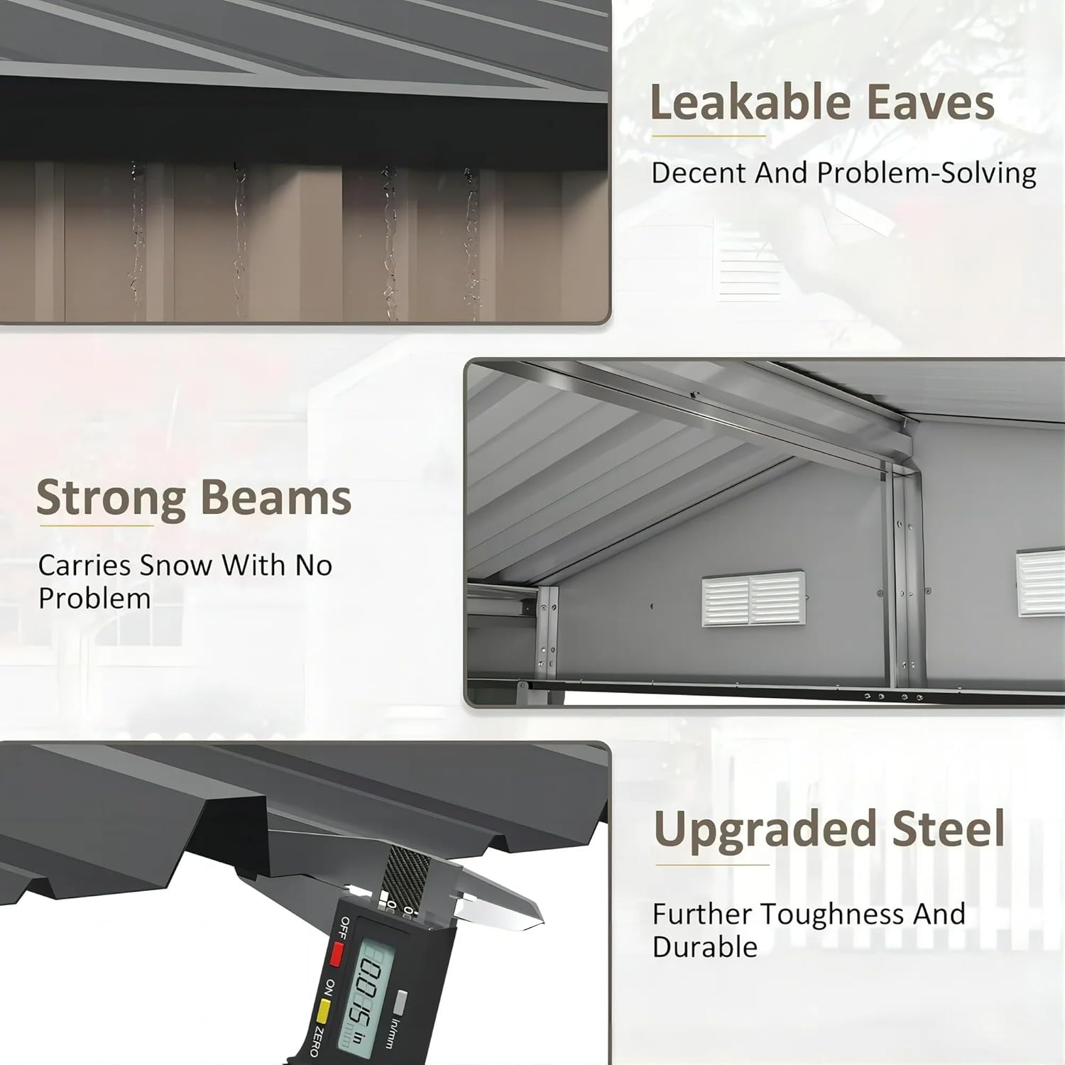 - Robust Steel Construction for Long-Lasting Durability: Built with heavy-duty galvanized steel, this shed resists rust, harsh weather, and wear, offering reliable protection for your tools and equipment year after year.