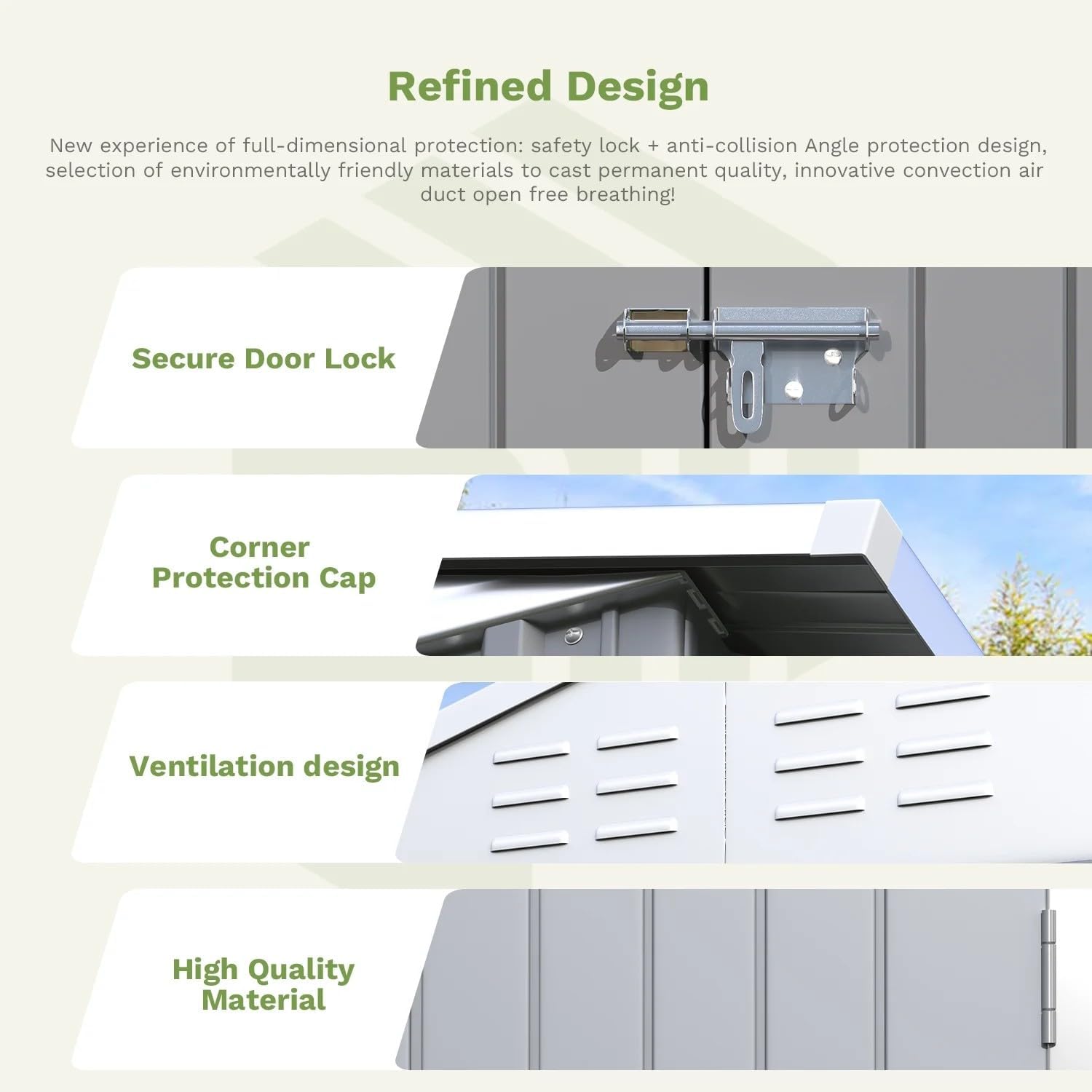 - Robust Steel Construction for Long-Lasting Durability: Built with heavy-duty galvanized steel, this shed resists rust, harsh weather, and wear, offering reliable protection for your tools and equipment year after year.
