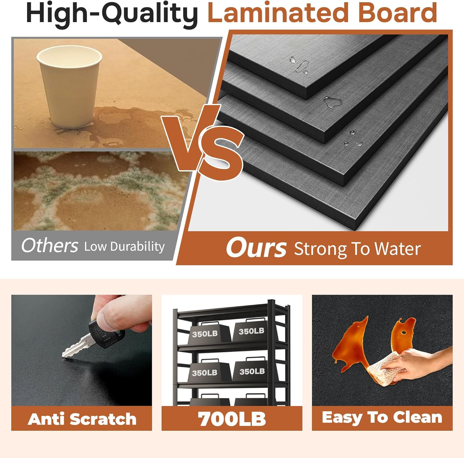 - πͺ COMMERCIAL-GRADE STRENGTH, 3500 LBS BEAST MODE β Don't settle for flimsy shelves. Our garage shelving is forged from high-quality, thickened cold-rolled steel and features an exclusive double-layered column design for unmatched stability. It effortlessly supports a massive 3500 LBS total capacity (700 LBS per shelf). From heavy power tools and packed totes to engine parts, store your heaviest items with absolute peace of mind. Conquer your clutter with confidence!