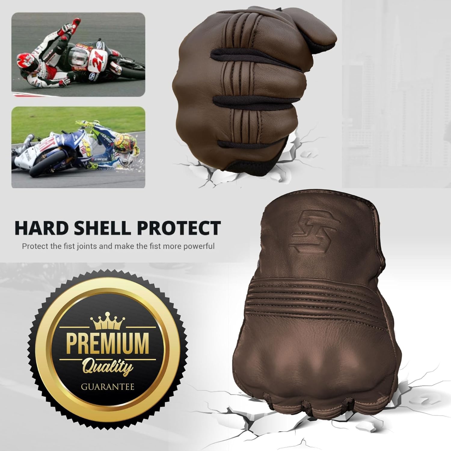- β ADVANCE PROTECTION: With Professional knuckles, Fingertips, and double leather padding on the side palms provide additional protection against impacts and abrasions. SATHIND motorcycle gloves greatly protect your hands while fast racing. The anti-slip silicone printing on the palm increases the grip on motorcycle handlebars to improve driving safety.