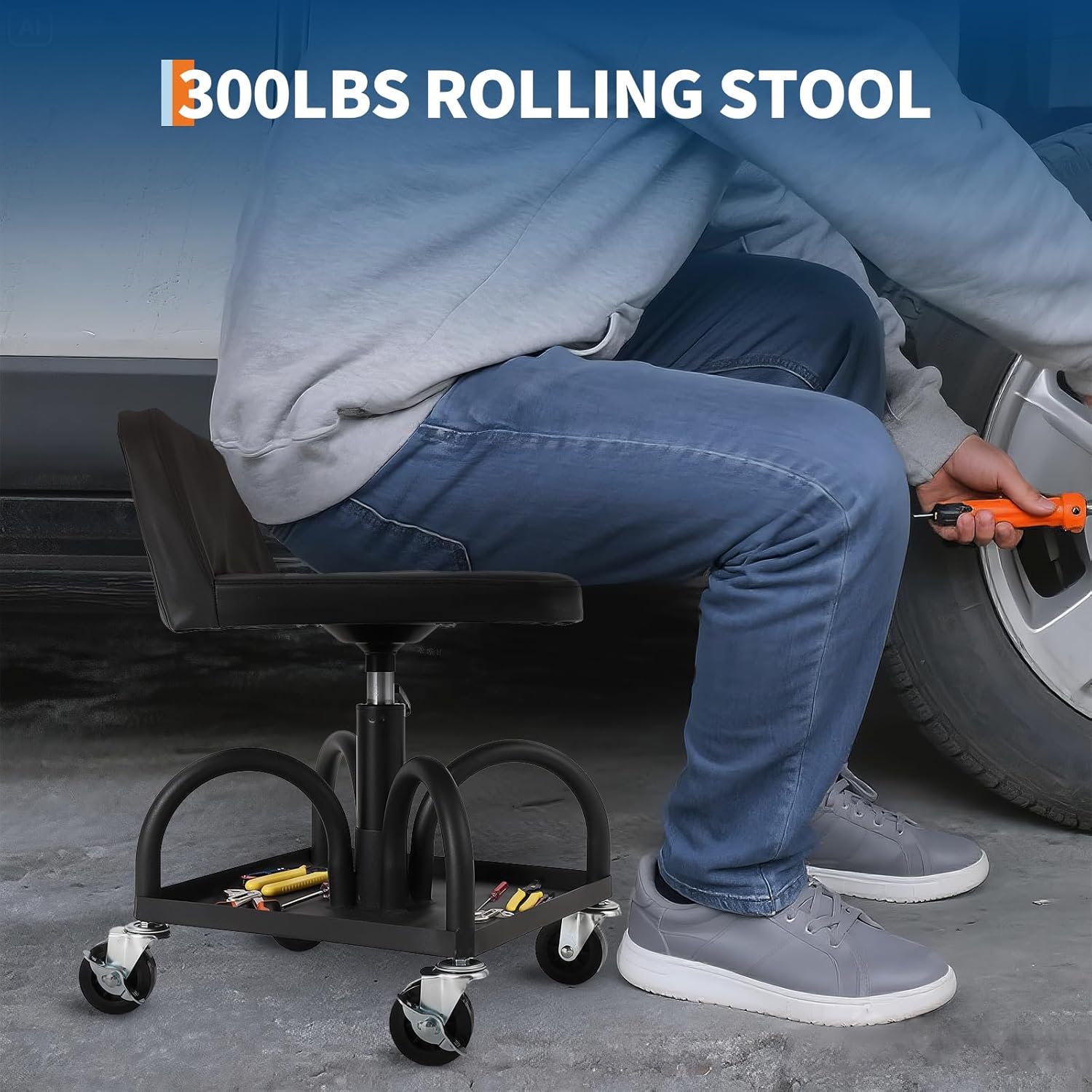 - Convenient Tool Storage: Keep your tools close at hand with a spacious built-in magnetic tool tray under the seat, making it ideal for mechanics, detailers, and anyone needing quick access to tools.