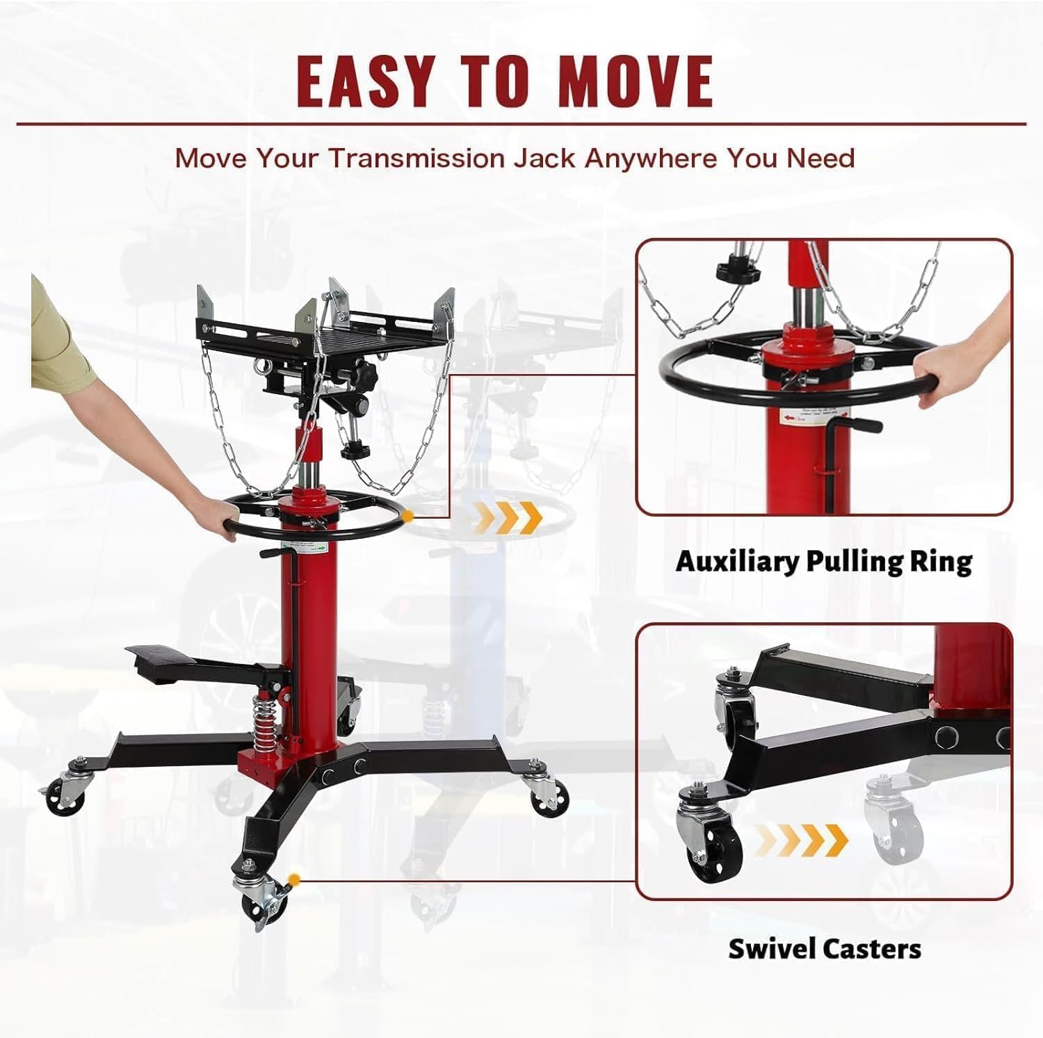 - Durable Steel Construction & Secure Packaging:Crafted from industrial-grade steel, this transmission jack is built for long-lasting durability and heavy use. It ships in reinforced packaging with all parts securely fastened to prevent damage during transit. Perfect for both professional workshops and DIY home garages, this tool combines toughness with reliable performance.