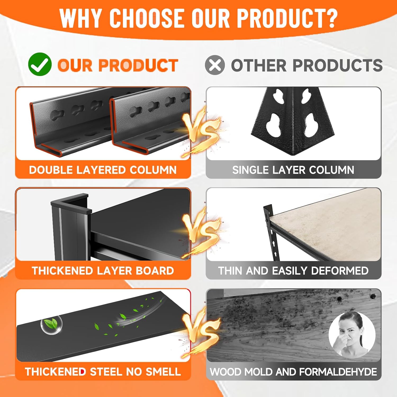 - 【Quality Assurance and Professional Support】 Our professional team provides 24/7 online service. Every step from production to delivery undergoes rigorous inspections and passes three distinct quality checks. The reinforced packaging with corner protectors safeguards your metal garage storage shelving unit during transit. Enjoy a one-year warranty with free returns within 30 days; if you encounter any issues, contact us immediately after delivery. We highly value your user experience and are committed to providing optimal service for your garage storage and organization solutions