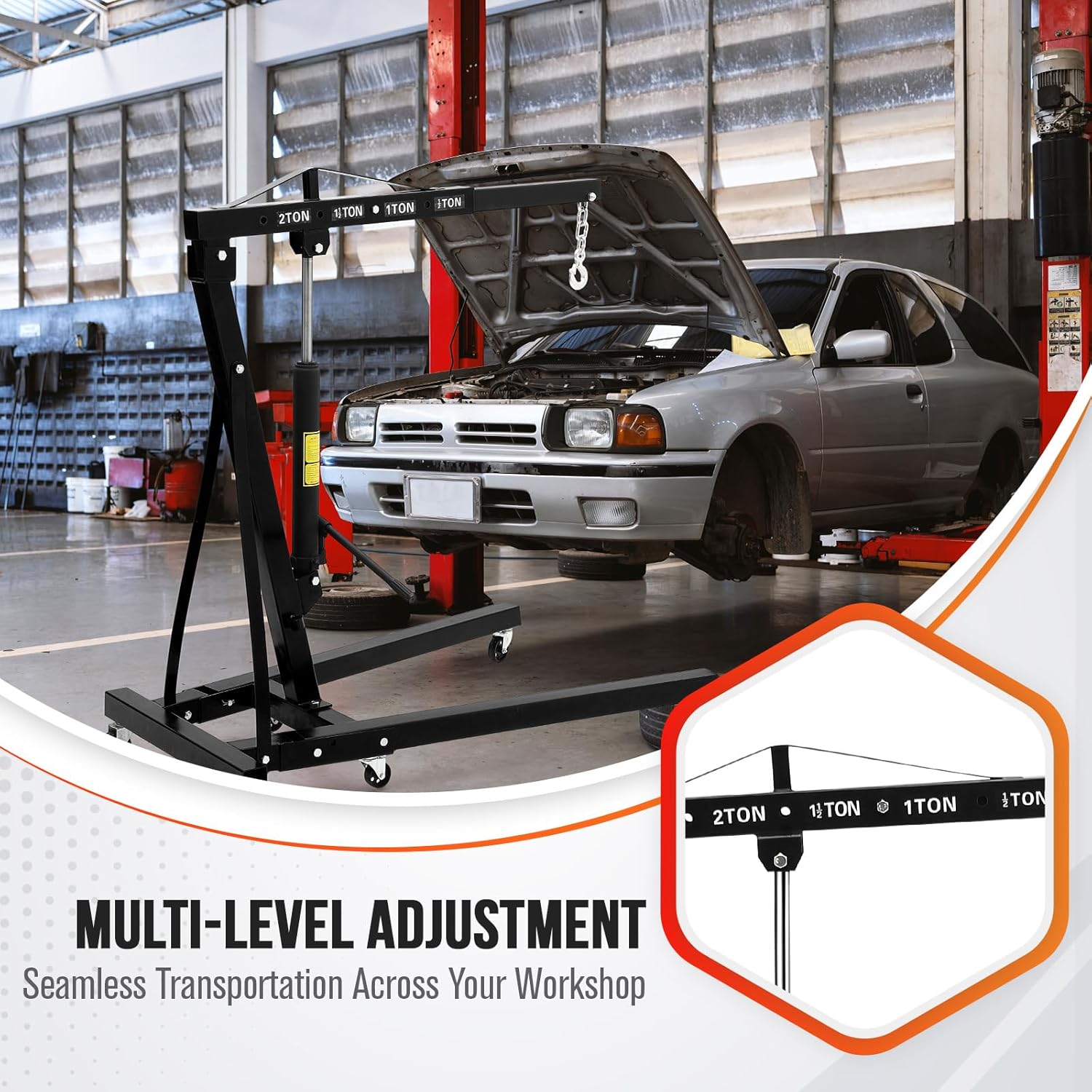 - STRONG 2-TON CAPACITY FOR BIG JOBS: Our hydraulic engine hoist can safely lift up to 2 tons (4000 lbs), making it ideal for pulling engines, axles, or even helping with other big workshop lifting tasks