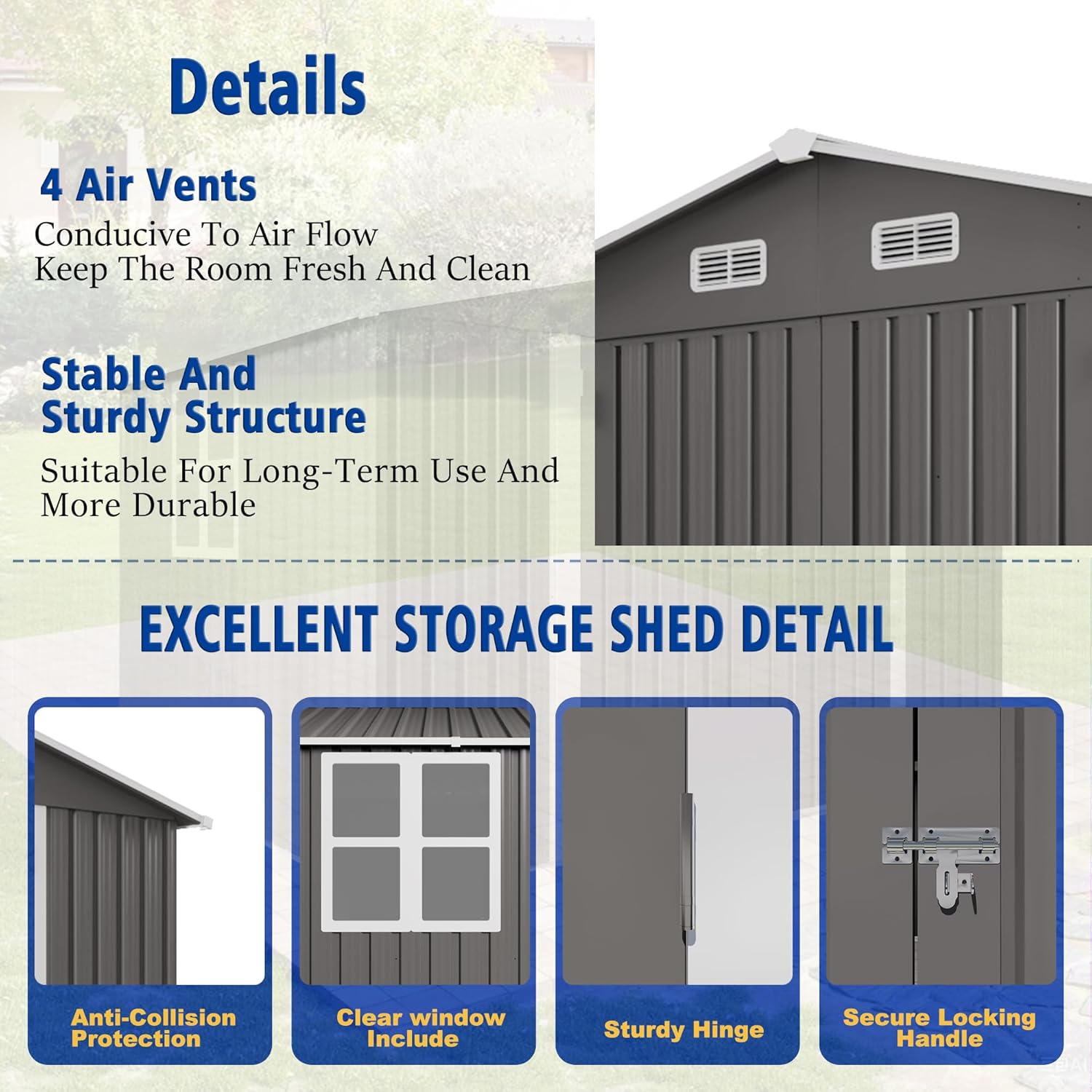 - Durable Construction: Built with a galvanized steel frame and finished with a special paint process, this metal garden shed resists weather damage, offering dependable protection for your outdoor storage needs.